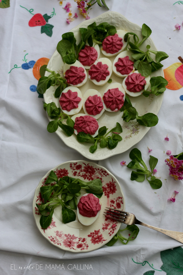 Si lo que quieres es sorprender con un plato lleno de color, te recomiendo este clásico, pero en su versión renovada huevos rellenos de atún y remolacha. Un plato fresco y delicioso que puedes preparar con antelación.