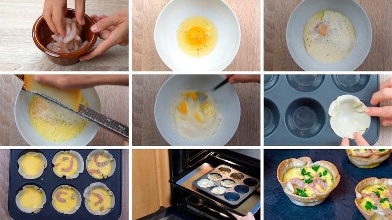 Precalentamos el horno a 170-180 grados y cuando esté listo, metemos nuestras quiches para hornearlas durante unos 25-30 minutos o hasta que veas que están doradas por arriba y que el huevo está cuajado.