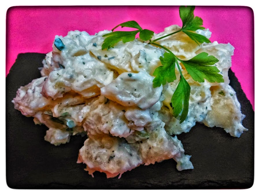 Pelamos y lavamos las patatas y las cortamos en trozos más o menos iguales para que a la hora de la cocción se hagan por igual , las ponemos en una cazuela con agua y una pizca de sal y dejamos al fuego hasta que pinchemos un trozo con el tenedor y estén blandas, retiramos y las sacamos poniéndolas en una bandeja dejando que se enfríen , sacamos la mayonesa ali olí y la extendemos por las patatas ya frías y tapamos la bandeja con papel film y dejamos en la nevera mínimo un par de horas , para que cojan todo el sabor , sacamos y emplatamos como mas nos guste .
