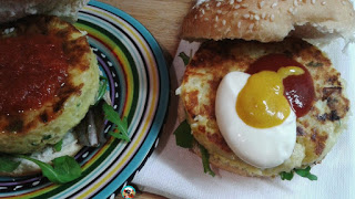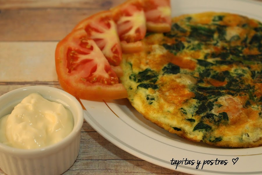 Mirad que estupenda idea ha tenido el blog Huele bien, una hamburguesa pero de tortilla.TORTILLA DE CLARAS CON ESPINACAS Y GAMBAS
