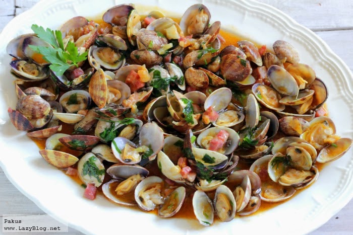 Almejas al fino con jamón. Receta de aperitivo (1)