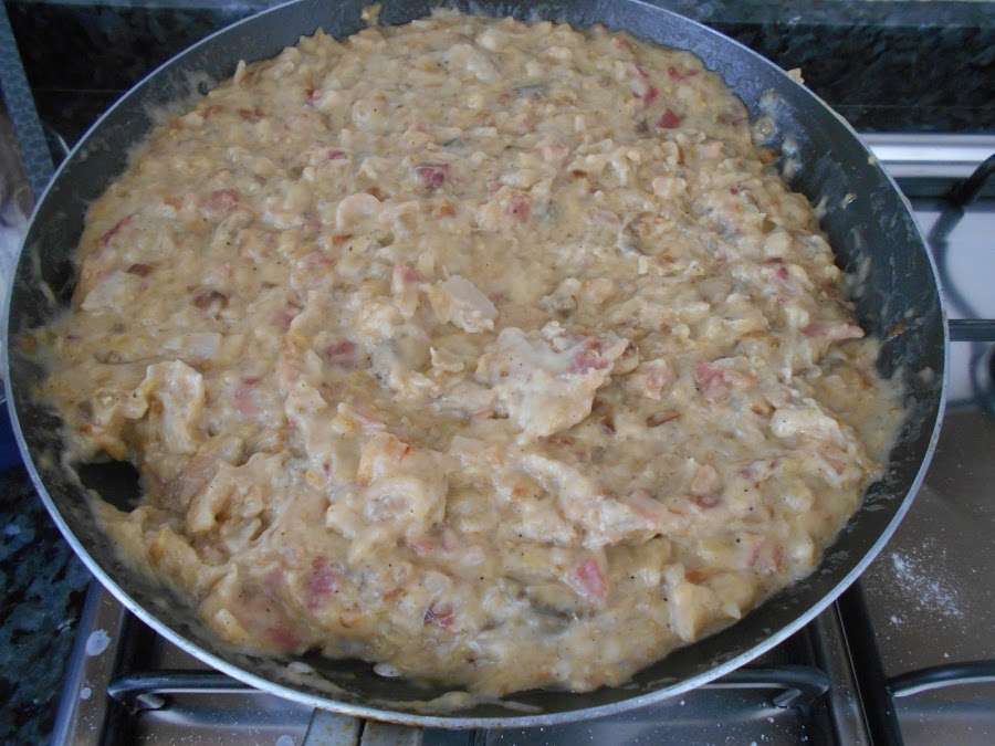 Bechamel con berenjena , bacon y cebolla. (Ver receta completa pinchando el enlace )