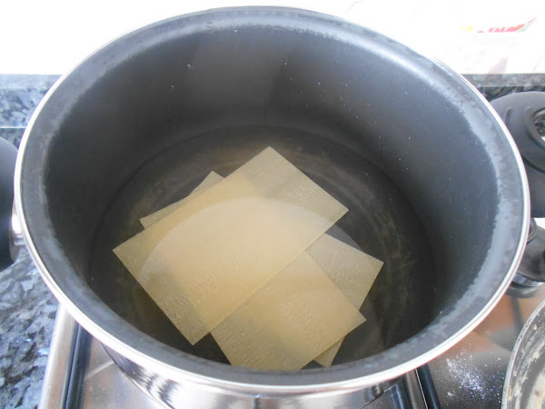 Cocemos la pasta. En este caso no tenia de canelones y lo que hice fue partirlo por la mitad después de cocer.