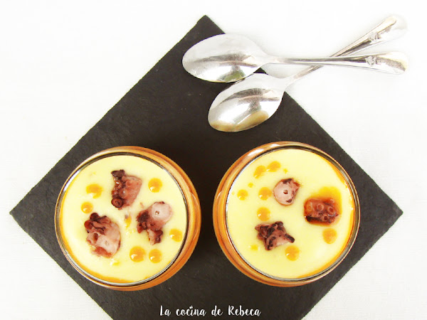 Otra opción estupenda es servir pequeñas raciones individuales, en tarritos o vasitos. Se pueden adaptar multitud de recetas de este modo, que de pronto adquieren una presentación elegante propia de un restaurante de cinco tenedores sin complicarnos demasiado la vida. Como buena gallega, me he enamorado de esta crema de patata al pimentón con pulpo; nos recuerda al conocido pulpo a la gallega, pero con una presentación espectacular. En La Cocina de Rebeca podéis leer toda la receta y los truquitos para que nos salga tan bonita como esta.