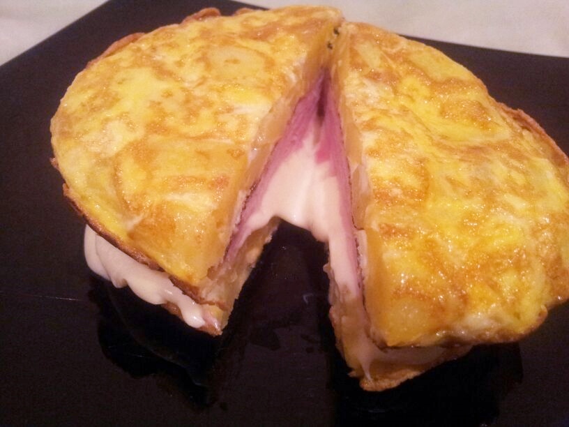 Carmen, ha hecho en rollo de tortilla, relleno de puré de patatas y becon. Lo recomienda para los niños. Para saber más: (Aquí)Tortilla rellena de queso y jamón