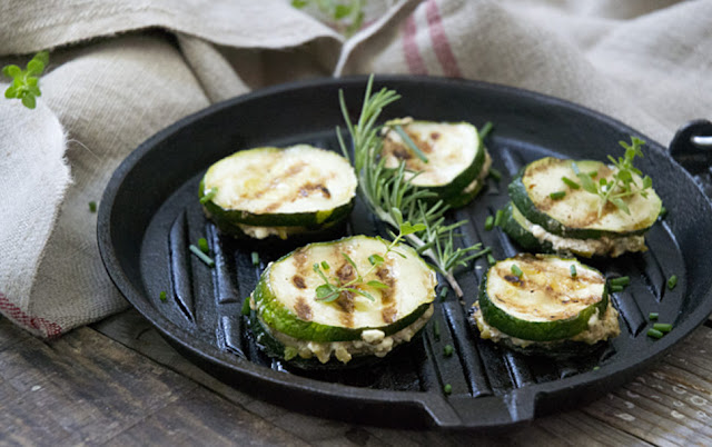 Los ingredientes son muy simples, solo necesitas calabacines, aceitunas rellenas, queso feta, ajo, oregano, pimienta, sal, aceite y vinagre. Y tan solo tienes que hacer una pasta con el queso y el resto de ingredintes con las que rellenaras los calabacines cortados en rodajas para finalmente hacerlos a la plancha, ¡más fácil imposible! Como siempre te recomiendo que visites el blog de Manu para ver como cocina el esta receta paso a paso.