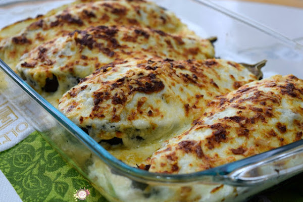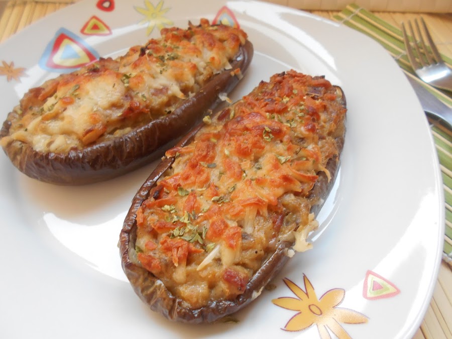 Berenjenas rellenas con carne de pollo