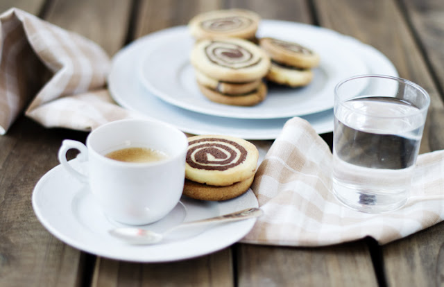 Aparentemente parecen un poco complicadas de hacer, pero nada de eso, son fáciles y con unos ingredientes sencillos...harina, azúcar , mantequilla, ralladura de naranja, cacao...mezclaremos los ingredientes en dos boles, uno para la masa de naranja y otro para la de chocolate, luego estiraremos ambas por separado y las ponemos una encima de otra y enrollamos. Cortamos las galletas, las horneamos y quedan así de bonitas y buenas.