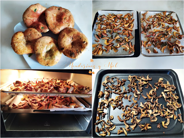 Una vez deshidratados, puedes guardarlos en un bote, o triturarlos para convertirlos en polvo de setas, para aderezar guisos, carnes a la plancha, para mezclar con sal....