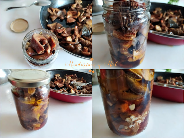 Deja que se enfríen un poco y ves echando los robellones en los botes de cristal.
