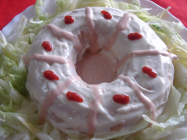 Lo batimos todo muy bien y lo ponemos en un molde untado con mantequilla, lo llevamos al microondas hasta que cuaje y lo servimos con mayonesa.