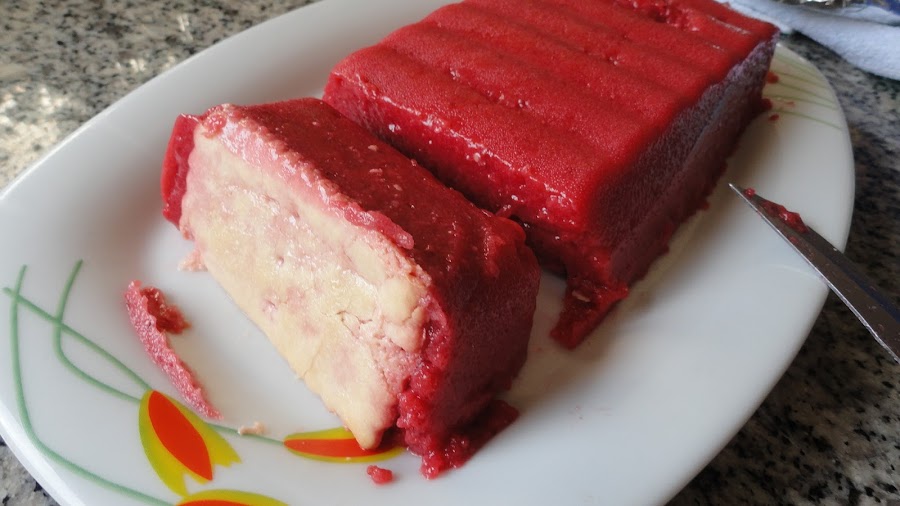 El blog Mari Recetas, tráe una Gelatina de fresa- con fresas- y galletas Napolitanas