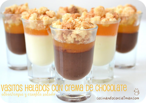 Vasitos helados de chocolate con albaricoque y crumble salado