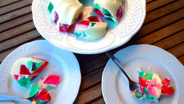 Una gelatina deliciosa, fresquita, ligera, y con un colorido extraordinario...seguro que triunfa en cualquier comida de este verano. La he cogido del blog Les receptes que m´agraden.