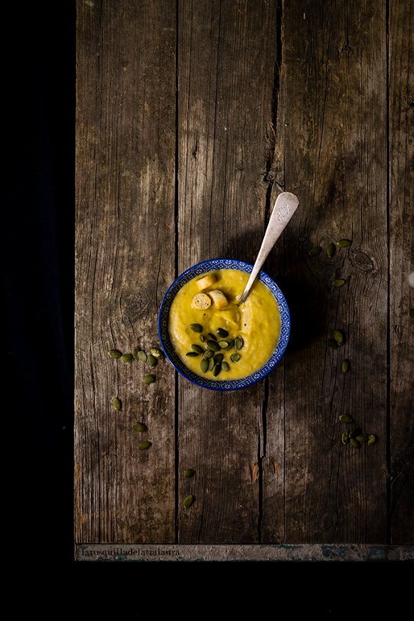 La última receta publicada, sin duda la de sabor más diferente. La leche de coco le aporta un sabor que para mi gusto es delicioso. El toque de comino molido nuca falta en mis recetas de cremas con calabaza.