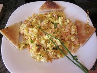 Un recurso muy socorrido es el revuelto de huevos, se pueden hacer con infinidad de ingredientes y aquí te traigo una muestra. Esta receta necesita huevos, en primer lugar, y luego un poco de salmón ahumado, una cebolla y poco más. Como todos los revueltos no hay que pasarse cuajando los huevos en la sartén con el resto de ingredientes para que no quede seco. Es muy fácil y rápida y el resultado es un revuelto riquísimo que te enseño del blog COCINA CON REINA.