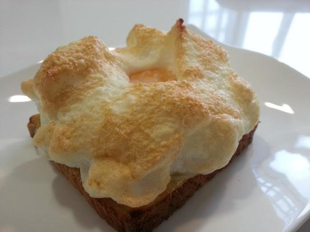 En segundo lugar una receta muy fácil y resultona para la que necesitas pan de molde, queso en lonchas, huevos y queso rallado. Montaremos las claras a punto de nieve y dispondremos en capas los ingredientes. La preparación se termina en el horno y el resultado es esta tostada tan espectacular.