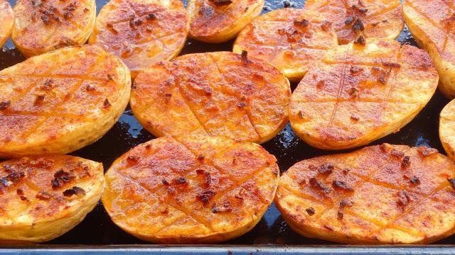 Del blog Les receptes que m´agraden he escogido otra idea para hacer las patatas asadas, esta vez con ajo y pimentón, una guarnición genial para, por ejemplo la carne asado al horno. ¡Las podeis preparar al mismo tiempo! Para hacerlas solo tenemos que cortar las patatas como nos indica la receta y espolvorear con ajo, pimentón... Luego al horno ¡Y ya las tendremos listas!