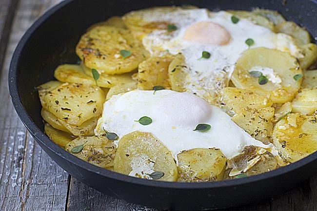 Esta receta la encontré en Cocinando con Catman. Me sorprendió mucho ya que no la había visto nunca ¡Pero tiene una pintaza espectacular! Para prepararla solo tenemos que freír ligeramente las patatas y luego terminar de cocerlas en una sartén con agua y un majado de ajo, pimentón y pan. Antes de terminar la cocción añadimos unos huevos ¡Y tenemos la comida lista!