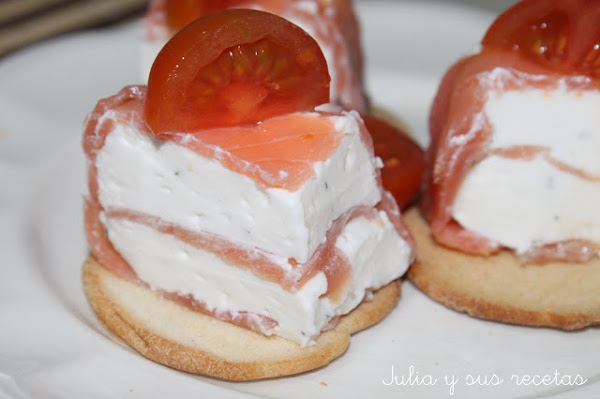 Hacer esta receta es muy sencillo. Mezclamos el queso crema con un poco de agua y gelatina ya hidratada. En un molde ponemos una capa de salmón, luego otra de queso, luego otra de salmón... Cuando hayamos terminado lo dejamos enfriar bien y ya lo tenemos listo para desmoldar y cortar. Si quieres ver todos los detalles de la receta pulsa sobre el titulo y te llevará a la receta completa.