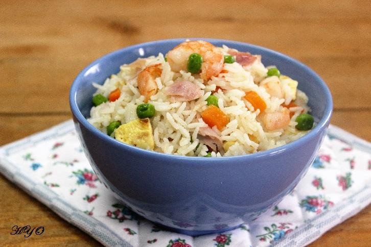 Para prepararlo tenemos que cocer el arroz, como nos explica muy bien Alicia en su receta, y luego saltearlo con con gambas, guisantes, tortilla.. Lo sazonamos con soja ¡Y listo! Para ver la receta completa y todos los detalles pulsa en el título sobre la foto