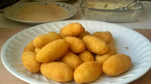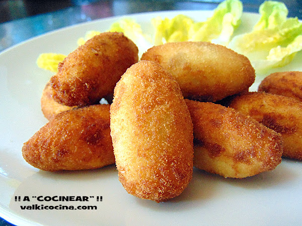 Podemos darles formas y tamaños diferentes y aunque por "croqueta" habitualmente entendamos que son las que se elaboran con bechamel ( leche, harina y mantequilla ), .. también podemos hacer variedades con otros ingredientes ...