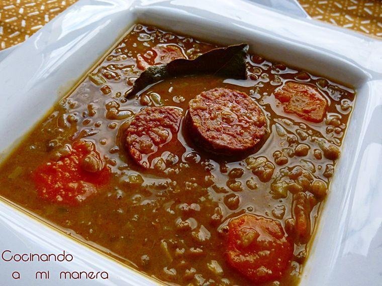 Un guiso de los de siempre pochando las verduras a fuego bajo, la cebolla, el ajo, la zanahoria y el puerro y para que le de sabor un poco de tomate que siempre viene bien, y con esta base coceremos las lentejas con el chorizo hasta que estén bien tiernas y todo aderezado con un poquito de pimentón y el punto justo de sal. Puedes ver todos los detalles en el blog de Cocinando a mi manera, entra y descúbrelo.