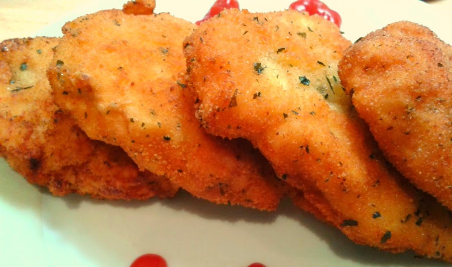 MEDALLONES DE POLLO EMPANADO