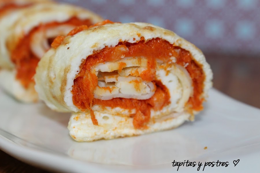 Al igual que María Jesús, María José nos trae otro rollito de tortilla, pero esta vez relleno de sobrasada, pavo y queso. No me digáis que no suena sugerente, ¿a que sí? Pues visitad su blog Tapitas y Postres y lo veréis.