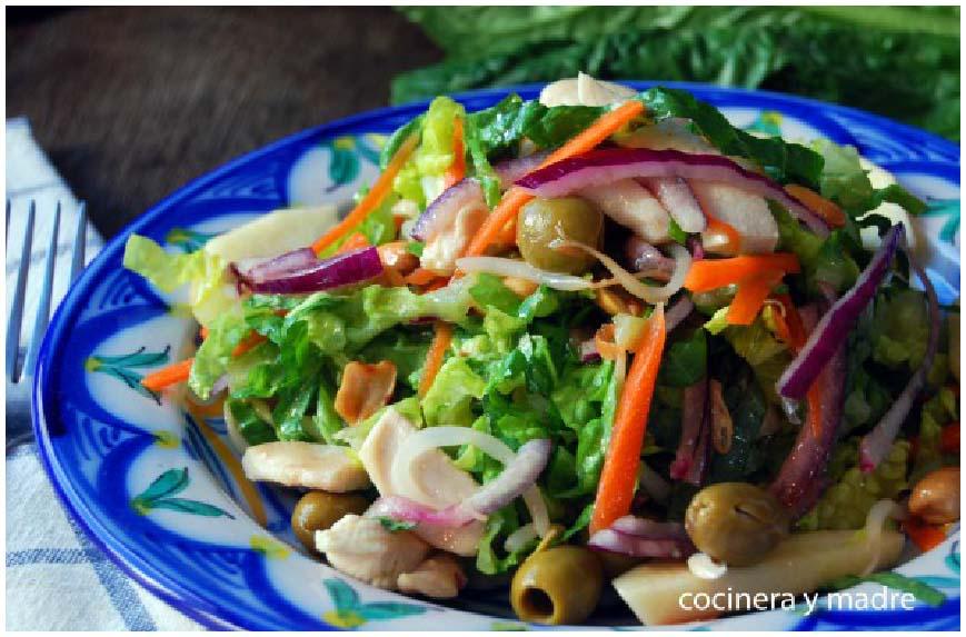 Esta receta es muy sencilla y se prepara en pocos minutos. Está muy rica, es muy saludable y es muy muy completa porque además de llevar verduras y pollo también lleva frutos secos, fruta y un aliño muy sabroso.