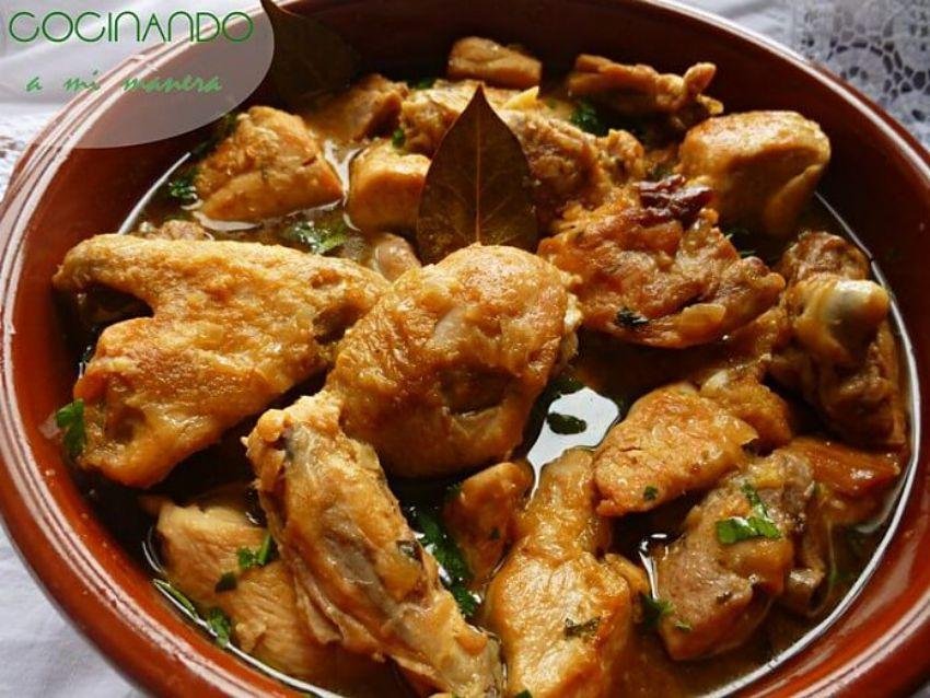 Esta receta de Carmen me encanta porque es de las de toma pan y moja, pero que rico está el pollo en salsa, sobre todo cuando es casero. Una receta que no puede faltar en nuestro recetario y para la que vas a necesitar un pollo limpio y troceado, una rebanada gruesa de pan duro sin corteza, ajo, cebolla, vino blanco, brandy, laurel, perejil fresco, azafrán, sal y aceite de oliva. La preparación es muy sencilla, poco mas que sofreír y guisar, pero el paso a paso está en su blog y si quieres puedes VER LA RECETA AQUÍ