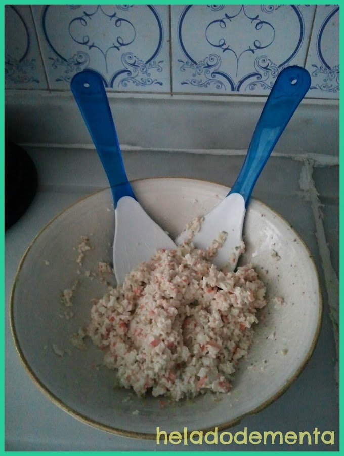 A continuación le añadimos la mayonesa para que quede todo como una pasta.