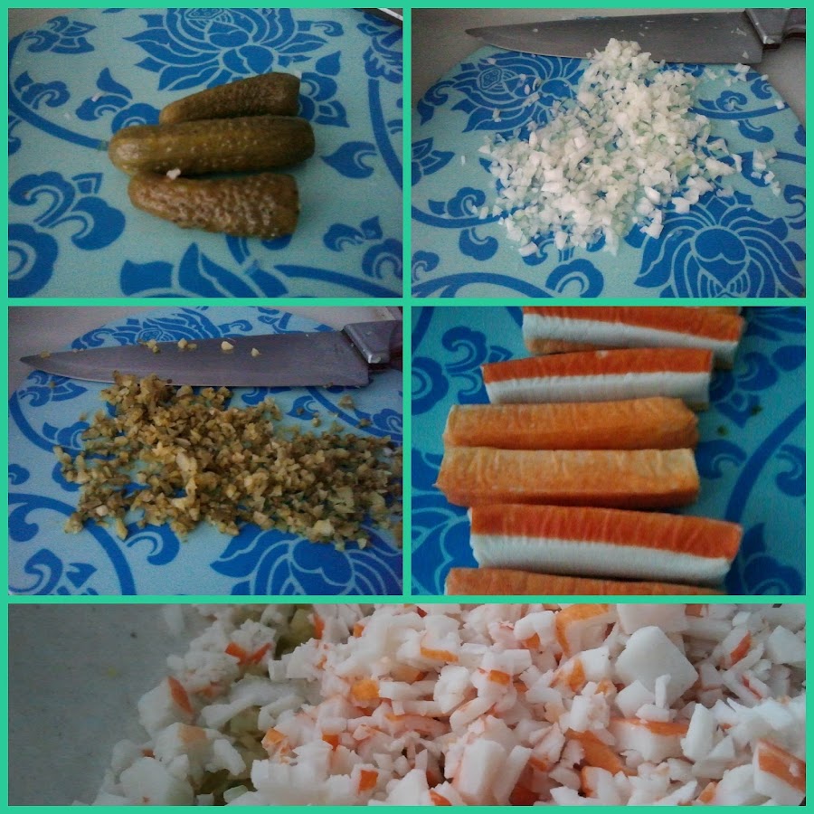 Se trocean bien todos los ingredientes y se mezclan en un bol.
