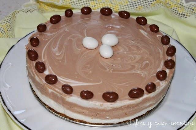Otra receta que me encanta es esta tarta de queso con chocolate del blog de Julia y sus recetas ¡Esta combinación seguro que está riquísima!