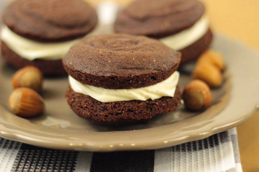 Whoopies de chocolate y avellanas.En el blog Cocina con Clau, vamos a encontrar estos whoopies de chocolate y avellanas. Los whoopies son un pastel-galleta de origen americano que suele llevar en medio una crema o buttercream. Estos en concretos llevan un relleno de vainilla. ¿A que te apetecen? Pues visita su blog para ver como se preparan.