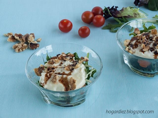 Yolanda, del blog La dulzura de Mari, ha tenido el acierto de enseñarnos aquí a preparar su deliciosas ensalada con salsa ligera de yogur y queso. Los ingredientes que vas a necesitar para preparar esta ensalada, son: cogollo, tomates, anchoas, nueces, yogur, queso crema, perejil, sal y pimienta. Esta ensalada también es súper fácil de preparar, lo único que tendrás que hacer es disponer todos los ingredientes en una ensaladera, tal y como nos explica Yolanda.
