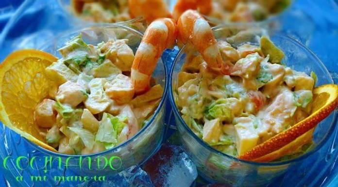 Desde el blog Cocinando a mi manera, Carmen nos enseña a preparar un delicioso cóctel del marisco, ideal para sorprender en tu mesa, en cualquier época del año. Para preparar este estupendo cóctel de marisco, los ingredientes necesarios, son: salsa cóctel, marisco cocido, manzanas, aguacate, huevo cocido y lechuga. Lo primero que tienes que hacer es lavar y cortar bien todos los ingredientes. Después, simplemente sírvelos en un par de copas y aderézalos con la salsa de cóctel.