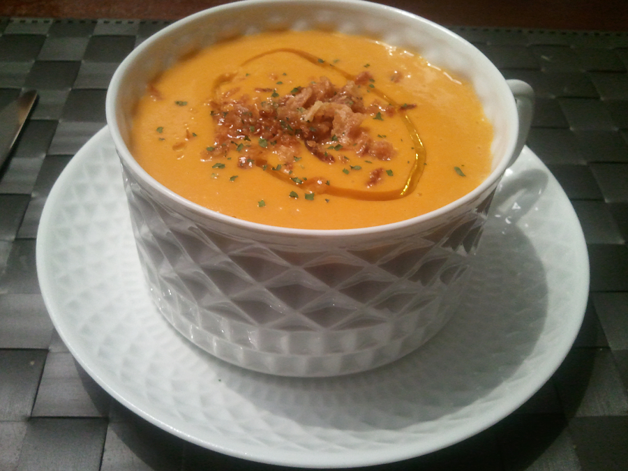 1. CREMA DE CALABAZA CON PARMESANO Y ALBAHACA