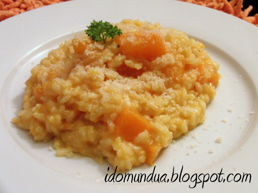 Este riquísimo risotto de calabaza es del blog IDOMUNDUA. Es un plato con una arroz meloso, fácil de hacer, sencillo y delicioso con el sabor que nos aporta la calabaza. Perfecto para disfrutar un riquísimo plato de risotto con parmesano!