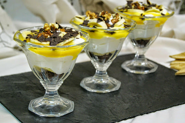 Anna del blog Recetas Fáciles, ha preparado un sencillo postre que te puede sacar de apuro si se te presentan invitados sin avisar. Son unas copas de nata (crema de leche) con nueces y mermelada de mandarina a las que ella añade otros ingredientes más como plátano o chocolate. Toda una delicia que podrás ver paso a paso en su blog.