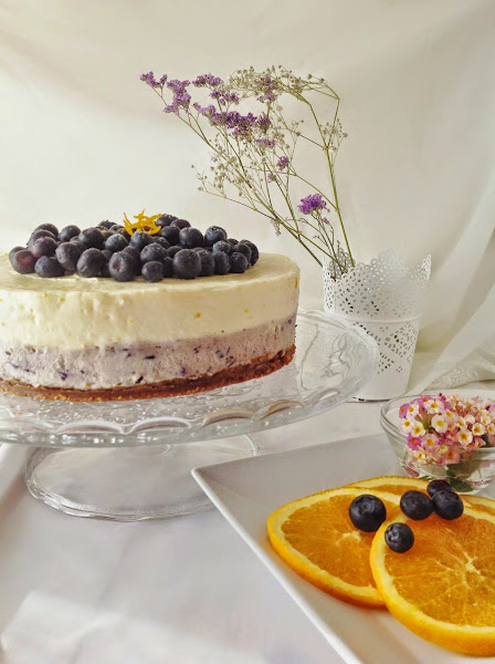 Patty"s Cake nos sorprende con una sofisticada tarta de queso y arándanos, con un toque de mermelada de naranja en la base de galletas. Una auténtica maravilla que puedes ver en su blog.