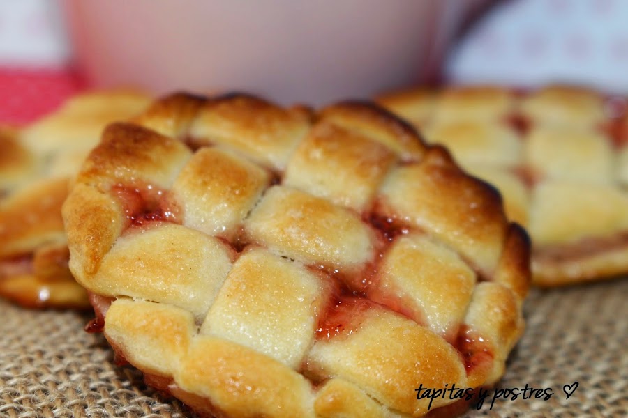 Y por último, desde mi blog Tapitas y postres os presento unas galletas enrejadas y rellenas de mermelada de fresa casera con una presentación muy original que aprenderéis a preparar si seguís los paso que os indico en el blog. No dejes de pasarte para verlo mejor.