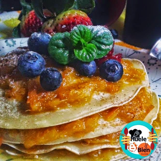Y siguiendo con la mermelada de naranja, Eva del blog la Cocina de Eva Style nos presenta las clásicas crepes del desayuno rellenas de esta mermelada de cítricos y adornadas con unos arándanos. Un desayuno maravilloso para comenzar bien el día. Pásate por su blog para ver como se preparan.