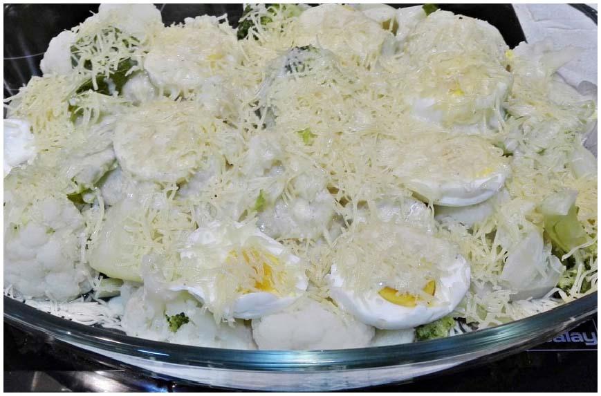 De fuerte olor y sabor, la coliflor se dulcifica cuando la preparamos con una delicada salsa bechamel a base de leche y mantequilla. Además, si le añadimos un queso rallado dulce tipo emmental nos quedará un plato delicado suave y delicioso. Para enriquecer la receta hemos añadido brócoli, patata y huevos duros.