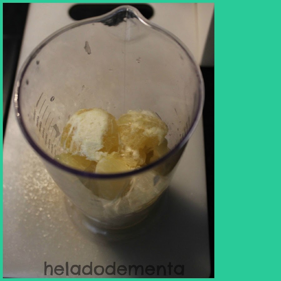 *Pelamos los limones y los troceamos en el vaso de la batidora y en marcha! hasta que estén bien triturados.