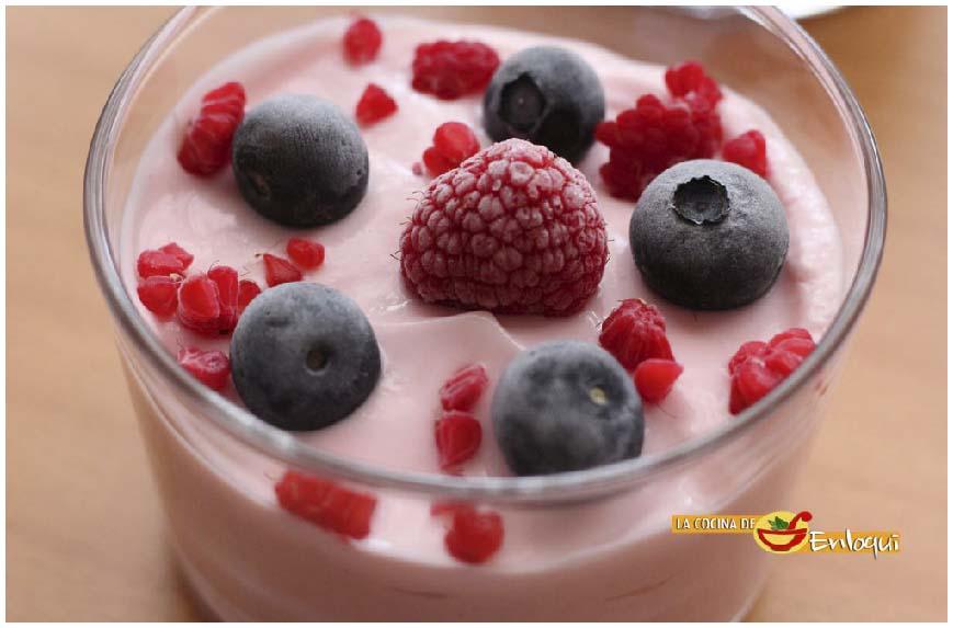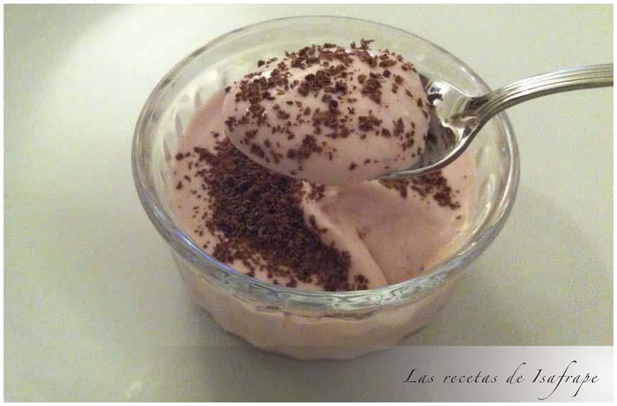 Mousse de griego con chocolate blanco y fresa