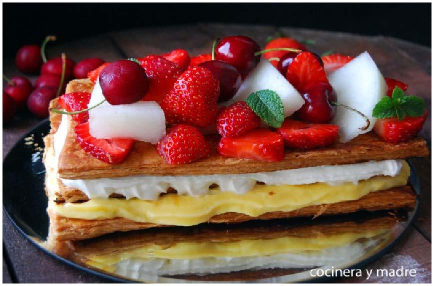 Milhojas de crema y nata (crema de leche) con fruta