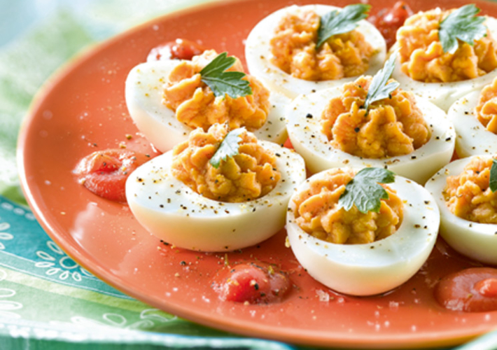 Una de las maneras de preparar los huevos cocidos es vaciando la yema, rellenando su interior y acompañándolos con alguna salsa. En esta receta, escogemos una conserva de mejillones y otra de atún para preparar una receta fría muy rápida y sencilla, ideal para servir como entrante o primer plato. La vamos a completar con una salsa de tomate.“¿Que os han parecido las recetas? ¿Sois también unos enamorados de las conservas?Janire