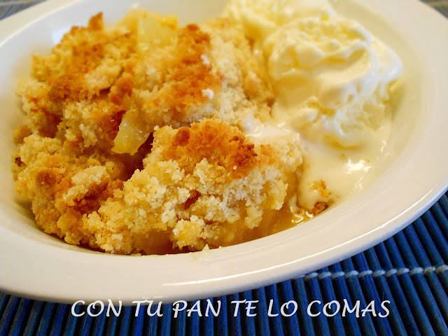 Nuria nos enseña en su blog CON TU PAN TE LO COMAS otra receta dulce que he comido y está muy rica Crumble de manzanas con helado, todo un acierto sin duda.
