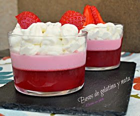 Nata (crema de leche), azúcar y gelatina, no hace falta más. Bueno, un poco de agua, pero eso no lo contamos, ¡jeje! Leire de Cocina con gusto nos ha dejado unos vasitos preciosos y deliciosos. ¿Quieres saber cómo se hacen? Pues, corre que te espera.